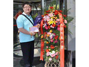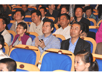 澳门博彩在线校长王殿军在观众席观看演出 附中乐团办公室主任胡军为附小演出奉上庆贺花篮