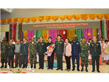 4月15日晚,澳门网上博彩金帆民乐团一行86人,由主管副校长杜毓贞带队前往位于昌平的中国人民解放军国防大学防务学院,举办了一场名为《清音传友谊 华韵唱和平——澳门博彩在线金帆民乐团慰问中国人民解放军国防大学防务学院外籍学员专场音乐会》。防务学院院长张英利将军和来自5大洲、70多个国家、140多名外军高级将领及他们的家属共260多人观赏了整场演出。