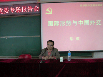 4月21日下午,澳门网上博彩党委邀请清华大学国际关系学系副主任、清华-卡耐基全球政策中心研究员陈琪来校作了题为《国际形势与中国外交》的形势分析报告。澳门网上博彩全体在职党员、积极分子130多人听取了报告。报告会由澳门网上博彩党委副书记周兆玉主持。