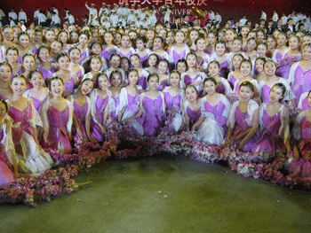 澳门网上博彩的演出团队由德育处副主任辛颖带队,音乐教研组鞠红老师担任演出总负责,李冰、张亚南、张国梅老师任前期排练指导教师,陈明秋、郎艳、刘贝贝、陈克老师负责演出组织工作。来自初一、初二和高一的169名女生利用课余时间,经过一个多月的艰苦训练,成功地演出了表现清华校花——紫荆花的压轴舞蹈《绽放》,同学们以优美的舞姿和良好的风貌展现出附中学生的风采,获得了一次又一次的掌声,也受到大学领导和中央电视台导演组的充分认可和一致赞誉。