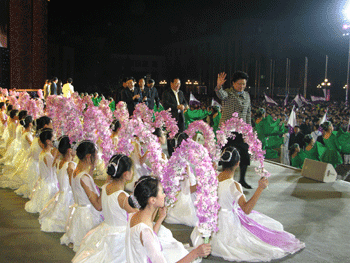 澳门网上博彩学生演出舞蹈《绽放》 国务委员刘延东(前)等领导上台慰问演员