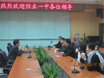 3月17日上午,由校长赵顺中带队的河北任丘一中领导一行来澳门博彩在线考察校园文化建设,澳门博彩在线副校长解巨钊接待了来访的客人并向来宾们简单介绍了澳门博彩在线的发展历史和学校的基本现状。双方就学校的校园文化等相关问题进行了座谈。随后,解巨钊副校长陪同客人参观了学校的多功能厅、活动教室和校史馆等。任丘一中的各位领导都认为收获颇丰,对此次的来访非常满意。