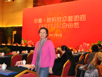 本次工作会由海淀区委宣传部副部长魏怀中主持,北京市常委、海淀区委书记赵凤桐、海淀区区长林福生等领导出席大会。会议首先由区宣传部长李彦来先生作“艺术团联盟2008-2010年工作总结和未来发展思路”的报告。之后,联盟艺术团的各团领导对联盟的发展提出了中肯的意见和建议,来自解放军艺术学院的张继刚同志首先发言,他提出“海淀区内还没有正规的、高水准、高质量的演出场地,因此,应当在海淀区内建设高标准的大型演出场所,甚至可以建设类似百老汇似的剧院群,让我们专业的艺术团在我们的海淀区内演出,同时也可以把外国的知名的艺术团体请来丰富我们海淀的文化生活,”他的讲话博得与会代表的热烈掌声。解放军军乐团团长于海同志建议“海淀区要发挥文化的带头作用,要经常举办大型的、高质量的文化活动。”舞蹈学院、海政歌舞团、电影乐团、电影学院等联盟艺术团领导纷纷为联盟献计献策,把会议推到一个小小的高潮。最后,海淀区区长林福生先生作总结发言,他强调:“艺术联盟会支持各个文化院团的发展,大家一起把海淀区建设成科技强区、文化强区。”