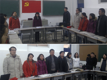 冯婧琨同志是外语组今年新入职的教师,在高10级承担实习班主任工作和两个班的英语教学任务。会前,支部就冯老师转正问题广泛征求了意见,召开了党外人士座谈会,并认真听取了年级组和教研组党员老师对冯老师的评价。会上,全体党员老师们畅所欲言,对冯老师的教学能力和敬业精神给予了充分地肯定,并希望冯老师继续努力,争取早日成为德才兼备的优秀教师。最后,支部全票通过同意冯老师转为中国共产党正式党员,会议在嘹亮的《国际歌》声中圆满结束。