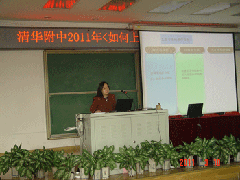 教务处主任赵鸿雁主持报告会 数学特级教师尹粉玉作报告