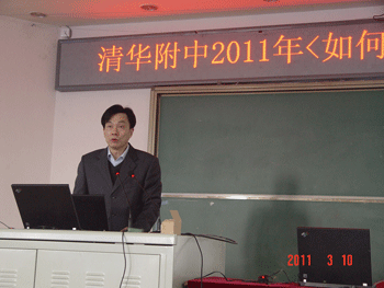 政治特级教师周建国作报告 地理特级教师田佩淮作报告