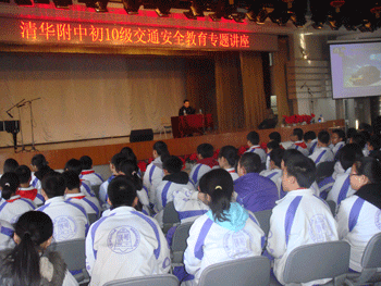 3月10日,澳门博彩在线邀请清华大学保卫处黄警官来校为初一年级(初10级)全体师生举行题为《交通安全伴我行》的专题安全教育讲座。黄警官用生活的案例,平时的语言,向师生解读了交通法律法规。告诫大家文明交通,从我做起;遵章守法,从每一步做起;珍爱生命,从文明出行做起;自觉学好交通安全知识,自觉遵守交通法规。