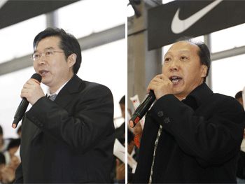 王殿军校长致欢迎词(左)—王东江处长宣布开幕 运动员代表(左)和裁判员代表宣誓