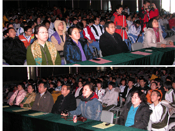 初中场(左上)、高中场学生主持 领导出席并观看演出