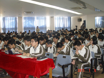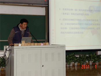 1月6日,澳门博彩在线教务处、高二年级组联合召开“北京2011年春季高中会考”考前教育大会。教务主任赵鸿雁、高二年级组长王宝琴、高二全体班主任、教务老师蒋东海以及全体高二学生参加会议。