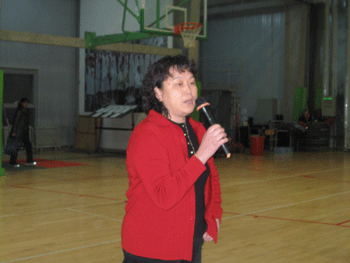 工会主席周兆玉在开幕式上致辞 参赛的所有教职工及家属合影留念