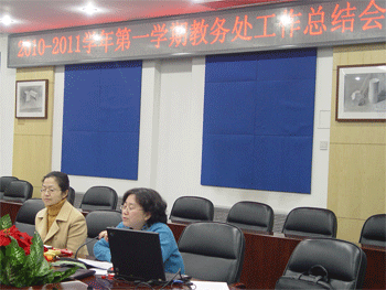2011年1月16日,澳门博彩在线召开2010-2011学年第一学期教务处工作总结会,教务主任赵鸿雁、副主任朱培及图书馆、网络中心、教务组和实验室全体工作人员参加了会议,会议由朱培主持。