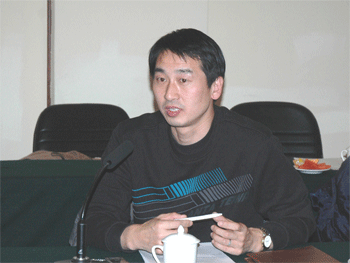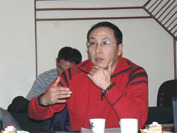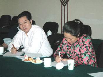 清华大学体育部副主任刘波主持会议 澳门博彩在线校长(左)、书记聆听汇报
