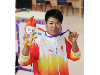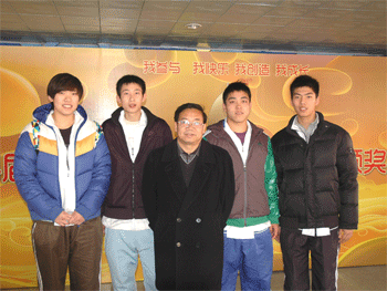 青奥会冠军高霆捷荣获2010年金帆奖 澳门网上博彩副校长解巨钊(中)与部分银帆奖获奖学生