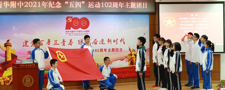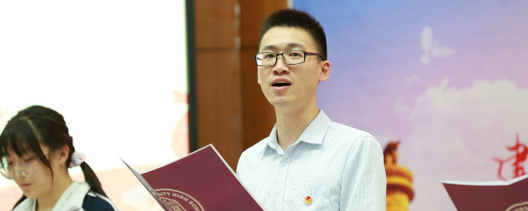 主题团日由团委副书记高1911班沈芸伍同学主持,在庄严的国歌声中,主题团日正式开始。首先,团委书记任星阳老师宣布2020-2021学年第二学期新团员名单。接着,与会老师们为新团员代表颁发了团员证、团章、团徽套盒并为他们佩戴团徽。随后,在团委秘书长高1911班宋清岳同学的带领下,全体团员在团旗下庄严宣誓。