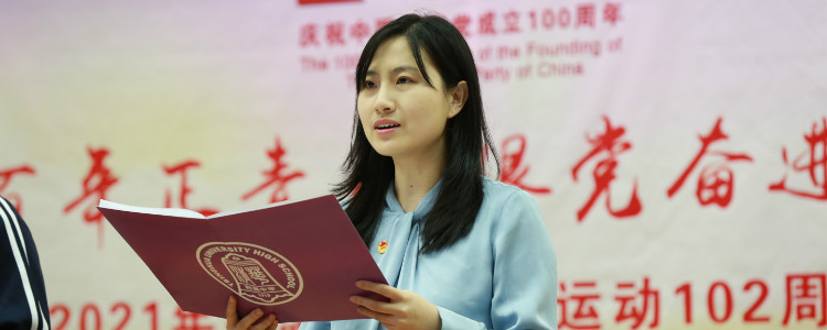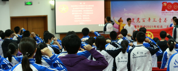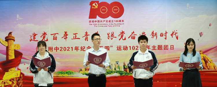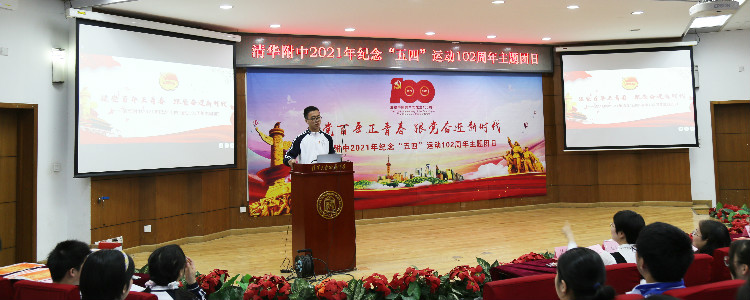 4月25日中午,校团委在华茂楼106举办“建党百年正青春,跟党奋进新时代”——纪念五四运动102周年主题团日暨五四表彰活动,党委副书记张洁,学生发展中心副主任李书霞,高20级年级组长曾建川,团委书记任星阳,教工团教师代表政治教研组岑逸飞老师、语文教研组迟旭老师,高中40名新团员和高19级、高20级团干部共200余人参加了主题团日活动。