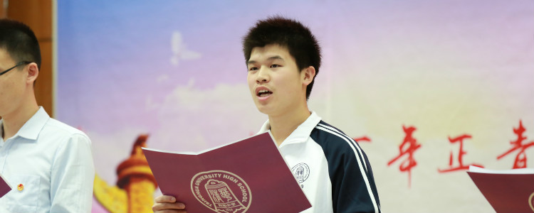 新团员宣誓(中间领誓人:团委秘书长高1911班宋清岳)