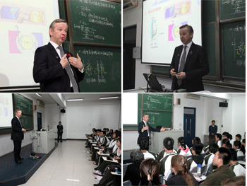 随后,戈夫部长一行听了俞家新老师的物理课,并与学生们进行面对面交流,回答了学生提出的“中英教育制度差别”、“赴英留学”等方面的问题。