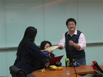 最后,乐团办公室主任胡军老师向乐团外请专家们颁发了新一年的聘书。