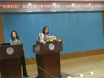 “哈佛妈妈”Lisa(右)在作报告