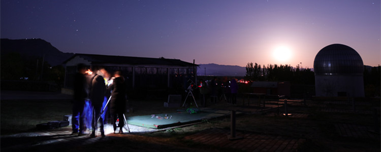 社员们在调试望远镜
