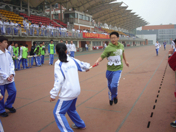 运动场上紧张激烈,热闹欢腾。本次活动首先进行的是每班全体绕场两圈热身跑,行进中各班口号嘹亮,队列整齐。接下来进行十男十女的四百米接力赛。各班运动健儿在操场上你争我赶,一次次激烈的竞争,一幅幅精彩画面,为了共同的目标一起努力拼搏。各班选手以超越自我的奉献精神,取得了令人满意的成绩。各班摄影志愿者则给运动员抢拍特色照片。体育老师专业的组织使活动进行得非常顺利,受到师生高度好评。班主任的协助,保证了活动的安全和细节的完美。活动结束后将在年级宣传板上展出此次活动的精彩图片并评奖。