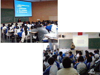 施一公教授做主题报告 文综学法指导讲座(左上)、班级学情分析(右下)