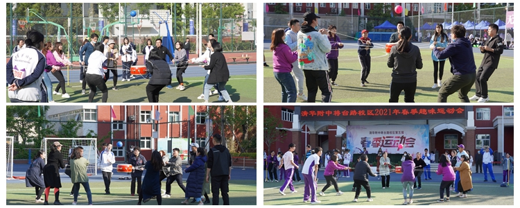 教师们也不甘示弱,在“众星捧月”这项比赛中,引来全体学生的加油与助威。无论青年教师还是年长教师,都热爱运动,为祖国健康工作五十年而努力拼搏。