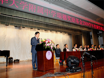 10月27日下午,澳门网上博彩瑞穗奖励基金2009学年度颁奖典礼在附中报告厅隆重举行,初0706班(现高1009班)张剑锋等60名优秀学生和陈红等10名优秀教师获得了总额40万元人民币的奖励金。清华大学校务委员会副主任庄丽君、设立奖励基金的中日双方有关负责人以及澳门网上博彩全体教师和部分学生共1000多人出席了颁奖典礼,澳门网上博彩副校长施平主持典礼。