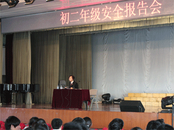 10月28日下午,澳门博彩在线初二年级邀请东城区人民法院少年庭的岳慧青庭长来校为全年级学生做了一场法制安全报告会,受到了全体班主任和学生的欢迎,德育处副主任陈桂芬出席报告会。