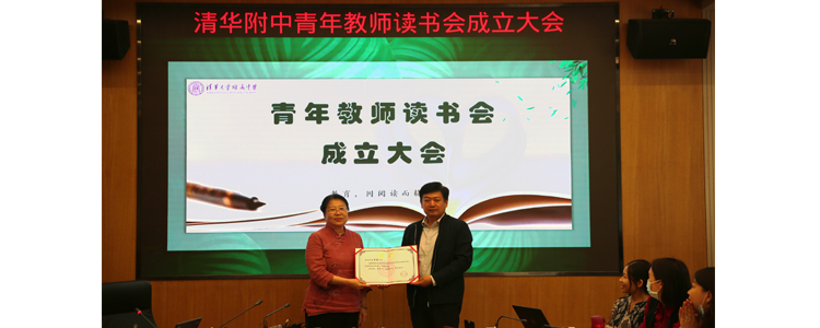白雪峰副校长为刘慧霞老师颁发“青年教师读书会指导专家”聘书