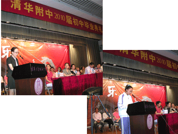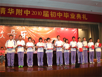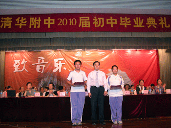 6月11日下午,澳门网上博彩2010届初中(初07级)毕业典礼在附中大礼堂举行,澳门网上博彩校领导王殿军、方妍、杜毓贞、施平,教务处副主任朱培、德育处副主任陈桂芬,初三年级组长郎艳、郑紫烟以及初三全体师生参加毕业典礼,教务处副主任朱培主持。