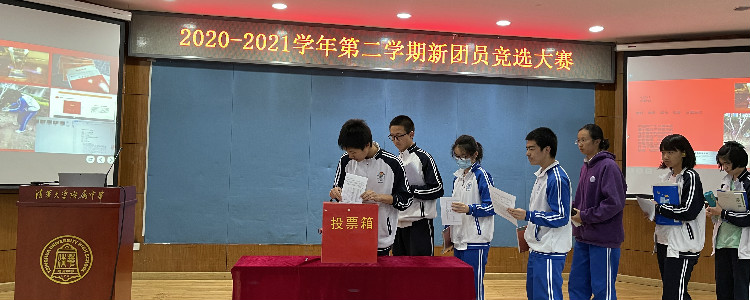 各班团干部认真聆听了各位竞选者的演讲,大会依照选举流程有序进行了投票工作,顺利选举产生了高19级11人、高20级6人,共17名新团员。