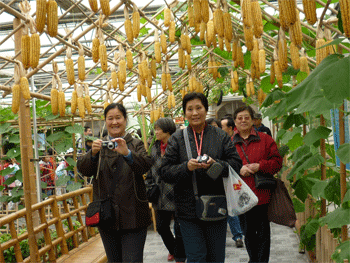 世界花卉大观园为国家“AAAA”级旅游景区,这里的景观由十大温室和十五个花园广场组成。各温室内的植物异彩纷呈、花团锦簇,令人目不暇接。室外景观有各具特色的花园、广场及异国风情建筑。使世界花卉文化和精美的园林艺术交相辉映,巧妙融合。老同志们徜徉于花的海洋,呼吸着空气中的湿润与芬芳,感到无比惬意。
