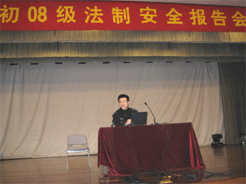 3月25日,澳门网上博彩邀请清华大学保卫处的黄学永老师来校做题为《人财安,人才安,遵纪守法,自觉防范保平安》的法制安全报告。初二年级全体师生听取报告。