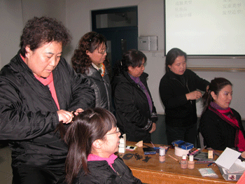 今年是“三·八”国际劳动妇女节100周年,为了帮助广大女教师们塑造更美丽的形象,2010年3月8日下午,澳门博彩在线工会邀请清华大学美术学院染织服装系李薇教授来校为女教工们做了题为《人物整体形象设计》报告会,并以听报告的女教师为模特,现场进行了化妆、发型演示。