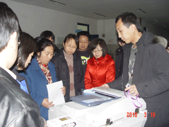 工程师向老师讲解打印过程 工程师向老师们进行复印演示