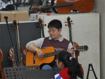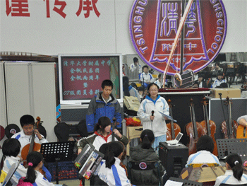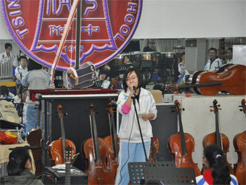 乐团新学生团长张凯祥和温欣怡主持告别会 胡军老师为同学演奏《送别》
