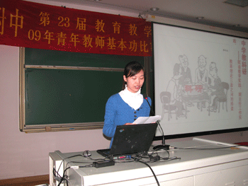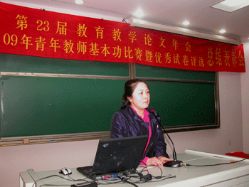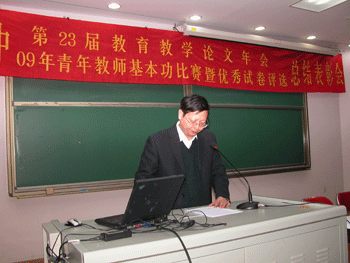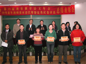 校领导为获奖者颁奖 教课研论文获奖代表宋薇发言