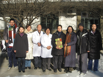 | 杜毓贞副校长(右3)代表全校师生将捐款 书交给张云耕母亲(右4)