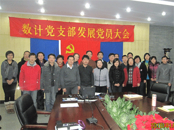 王殿军校长(左)、方妍书记分别在数计支部会上发言 数计支部发展大会全体参会人员合影