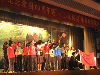 12月5日下午,澳门博彩在线团委举行了以《祝福祖国》为主题的纪念建国60周年暨“一二·九”运动74周年的革命短剧比赛。校领导王殿军、刘俊、施平、周兆玉、杜毓贞应邀出席了活动,由李学森、鞠红、李冰、陈明秋和谭晨老师担任评委。