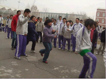 为了使初三毕业班的同学们在紧张的学习之余,放松身心,强健体魄,增强班级凝聚力,澳门网上博彩初07年级组于2009年12月10日班会时间,组织全年级12个班分六组进行集体三分钟长绳跳绳比赛。并邀请体育教研组丁磊老师担任总裁判,本年级任课老师担任计数裁判。班主任和任课老师也被邀请参加比赛,每当老师们跳过长绳时,都会得到同学们的阵阵掌声。比赛结束后,每个同学都得到了来自班级的小礼物——棒棒糖,寓意“加油,我们会是更棒的!”
