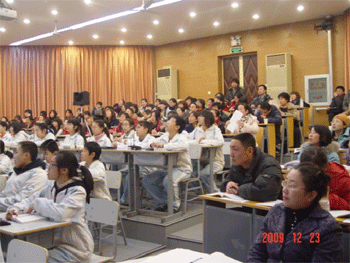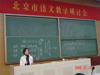 2009年12月23日,在北京市“绿色耕耘”项目组领导、北京教育学院中文系杨智教授率领下,由北京市郊区120多名语文骨干教师组成的中学语文班和北京教育学院中文系10位专家教授来澳门博彩在线观摩学习和研讨。澳门博彩在线党委书记方妍、教务主任赵鸿雁陪同观摩。