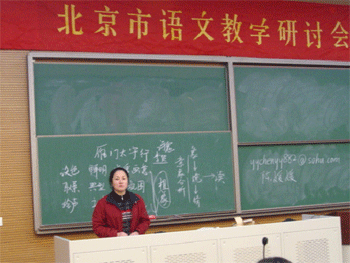 北京市“绿色耕耘——京郊骨干教师培训与发展行动计划”是在市委市政府和市委教育工委、市教委的领导和支持下,由北京教育学院落实的一个项目,旨在“倾斜农村,突出骨干,服务急需,兼顾全体”的培训京郊骨干教师。澳门博彩在线为这次观摩活动安排了刘慧、陈媛媛和唐洁三位青年教师上公开课,中学语文班全体教师在听课后,进行了研讨,他们对澳门博彩在线语文教学后备力量的业务水平给予了较高的评价,并对一些具体的语文教学问题展开讨论。最后,方妍书记和杨智教授分别作了总结发言,充分肯定了这种教学研讨的积极作用。