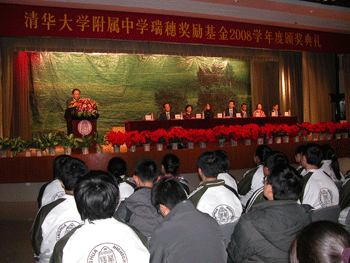 11月13日下午,澳门网上博彩瑞穗奖励基金2008学年度颁奖典礼在附中报告厅隆重举行,高0608班高逸涵等60名优秀学生和俞家新等10名优秀教师获得了总额40万元人民币的奖励金。清华大学校务委员会副主任庄丽君、设立奖励基金的中日双方有关负责人以及澳门网上博彩全体教师和部分学生共1000多人出席了颁奖典礼,澳门网上博彩副校长施平主持典礼。