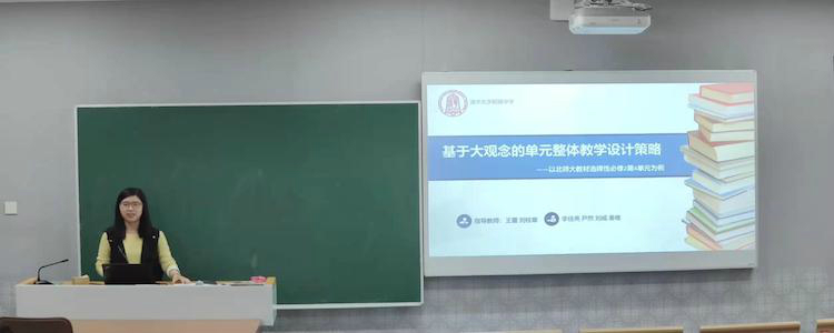 高二英语组刘威老师就《基于大观念的单元整体教学设计策略》进行了分享。以北师大版本教材选择性必修2第4单元为例,分享了单元整体设计思路,强调指向大概念的单元整体教学能够将碎片化的学习转化为结构化的学习,促进核心素养落地课堂。
