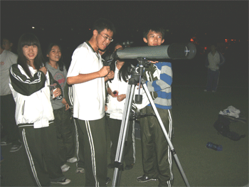 同学们在进行天文观测