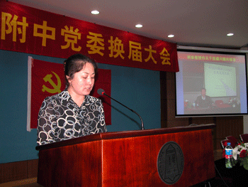会议首先表彰了2009年清华大学及附中两级优秀党支部和优秀党员、党建工作者。随后,大会严格按照党章规定的选举办法和选举程序,在公平、公开的原则下,组织全体正式党员进行新一届党委委员的投票选举。在计票过程中,上届党委书记方妍作了题为《学习贯彻科学发展观,开创附中党建新局面》的工作报告。报告回顾了2006年以来党委工作的基本情况,总结了工作成绩及取得的经验,分析了工作中存在的不足,提出了今后三年的工作设想。