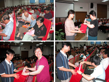 出席大会的领导为获奖集体和个人颁奖 出席大会的党员们认真填写选票和投票